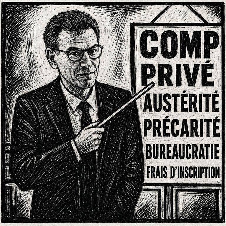 Début 2023, Martin Hirsch et Muriel Pénicaud ont publiquement évoqué le désir de leur groupe, Galileo Global Education (GGE), de « participer à la vision d’une grande politique publique ». Dès le mois d’avril, ce mastodonte de l’enseignement privé lucratif remettait au ministère — avec copie à la presse — ses dix propositions pour une « régulation renforcée ». À l’été 2025, le ministre Baptiste présentait en Conseil des ministres un projet de loi globalement conforme aux vœux de GGE. Il y assumait d’ailleurs pleinement une logique de dérégulation au profit du secteur privé, affirmant : « Pour moi, il y a un service de l’enseignement supérieur d’intérêt général qui est opéré par des opérateurs divers  »; il ajoutait :  « comment aurions nous pu absorber la croissance démographique sans la croissance de l’enseignement supérieur privé ? ». Il y a quelques semaines, Philippe Baptiste a perdu ses arbitrages à Matignon et à l’Élysée, voyant sa loi de privatisation repoussée à l’après présidentielle. Mais le lobbying des grands groupes du secteur privé lucratif, via les anciens ministres qu’ils emploient, épaulés par les sénateurs conservateurs et une poignée d’idiots utiles a permis l’inscription de la loi à l’ordre du jour du Sénat : le 20 mai en commission et le 1er juin en séance publique. Le discours de légitimation de la loi a changé, qui feint de se préoccuper des étudiantes et des étudiants arnaqués par un secteur privé gavé d’argent public, voire, comble du cynisme, de s’appuyer sur les révélations du livre Le Cube sur les méthodes du groupe Galileo Global Education. L’un de ses cadres a témoigné du fait que 20% seulement de l’argent donné par le contribuable (130 millions d’euros en 2022) sert à l’enseignement.